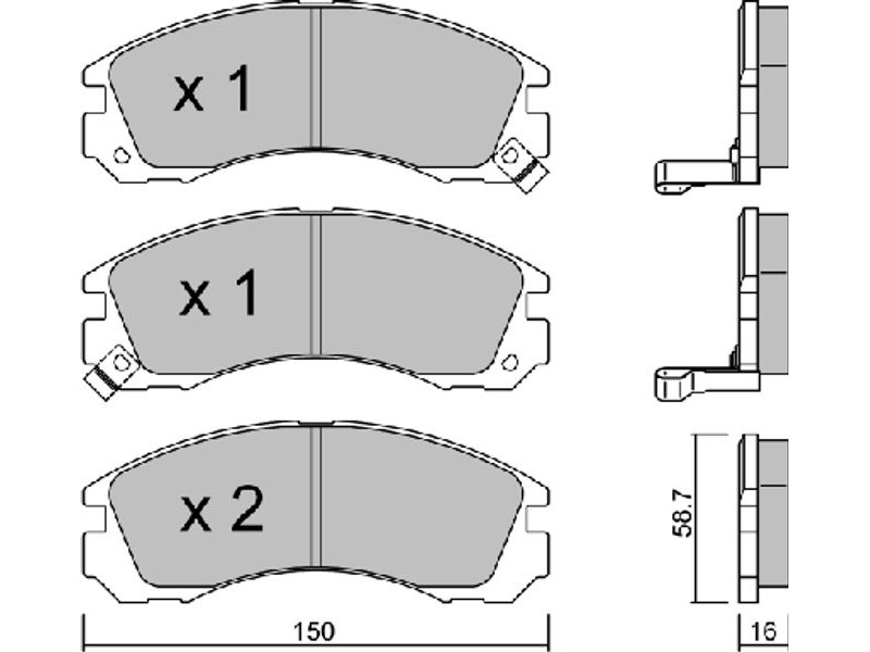 Criteries : Επαφή προειδοποίησης φθοράς με ηχητική προειδοποίηση φθοράς, Πάχος [mm] 16, Πλάτος [mm] 150, Στοιχεία ελέγχου ECE R90 APPROVED, Σύστημα φρένων Akebono, Ταλάντωση με αποσβεστήρα κραδασμών, Υψος [mm] 58,7