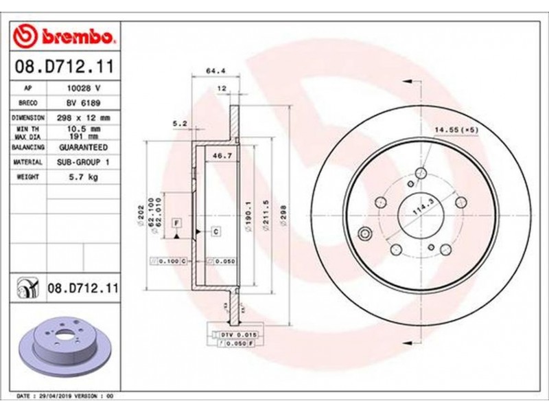 Criteries : Αριθμός οπών 5, Διάμετρος κέντρωσης [mm] 62, Ελάχιστο πάχος [mm] 10,5, Εξωτερική διάμετρος [mm] 298, Επιφάνεια με επίστρωση, Πάχος δισκόπλακας [mm] 12, Τύπος δισκόφρενων πλήρες, Υψος [mm] 64