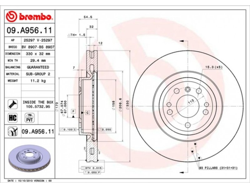 09.A956.11 ΔΙΣΚΟΙ ΕΜΠΡ.MB GLE/ML (W166) 330MM BREMBO 09.A956.11 - Δισκόπλακα