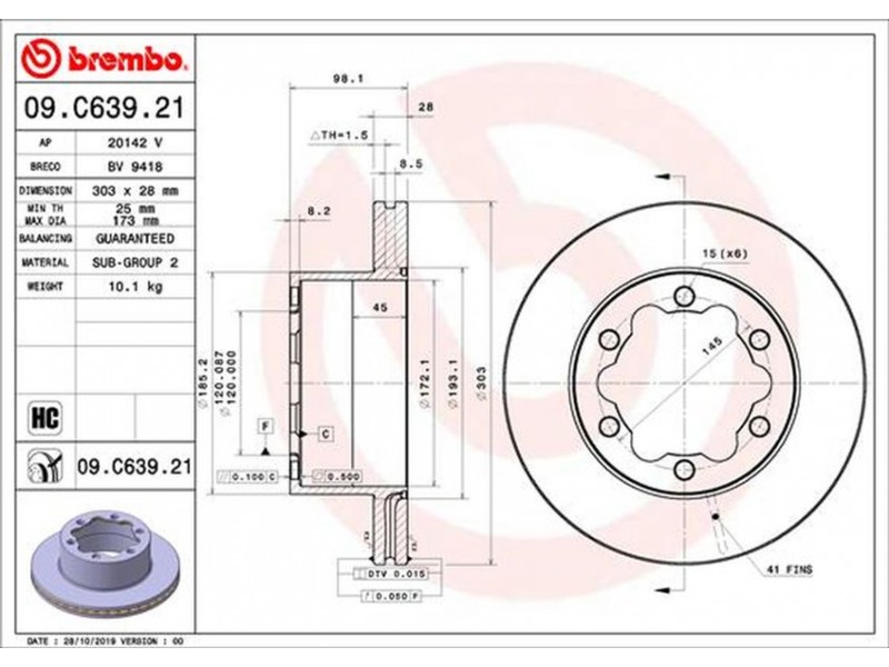 09.C639.21 ΔΙΣΚΟΙ ΟΠΙΣΘ. MAN TGE 17- / VW CRAFTER 16-(303mm) BREMBO 09.C639.21 - Δισκόπλακα