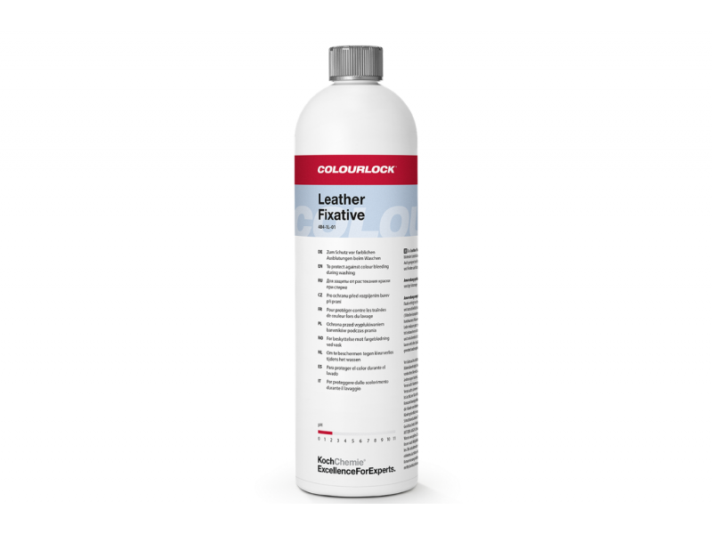 Το Koch-Chemie Colourlock Leather Fixative είναι ένα εξειδικευμένο προϊόν σταθεροποίησης βαφής δέρματος, σχεδιασμένο για χρήση μετά από διαδικασίες βαφής ή αποκατάστασης δερμάτινων επιφανειών. Σταθεροποιεί τη χρωστική στο δέρμα, μειώνοντας τη μεταφορά χρώματος και αυξάνοντας τη διάρκεια ζωής του αποτελέσματος.
