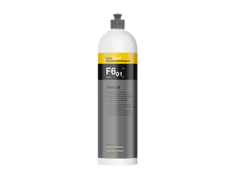 Η Koch-Chemie Fine Cut F6.01 είναι επαγγελματική αλοιφή μεσαίας κοπής χωρίς σιλικόνη και λάδια, σχεδιασμένη για την αφαίρεση ελαφρών γρατζουνιών, σημαδιών πλυσίματος και σημάτων λείανσης έως P2500 από βαμμένες επιφάνειες αυτοκινήτων και άλλων οχημάτων. Παράλληλα προσφέρει βαθύ, καθαρό γυαλιστερό φινίρισμα χωρίς να αφήνει νέες μικρο-γρατζουνιές.