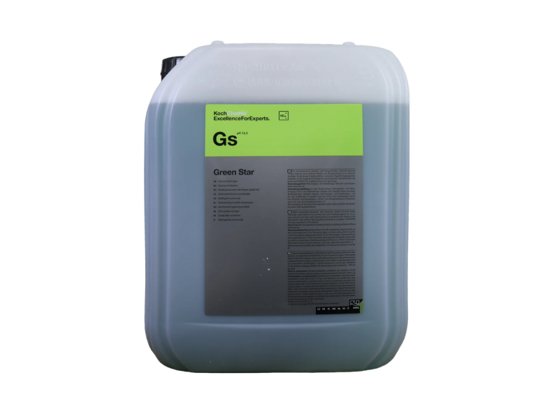 Το Koch-Chemie Green Star (Gs) είναι ένα ισχυρό αλκαλικό καθαριστικό γενικής χρήσης (APC), ιδανικό για καθαρισμό εσωτερικών και εξωτερικών επιφανειών οχημάτων. Αφαιρεί αποτελεσματικά λάδια, γράσα, έντομα, βρωμιά δρόμου και οργανικούς ρύπους, προσφέροντας βαθύ καθαρισμό χωρίς ανάγκη έντονου τρίψιμου.