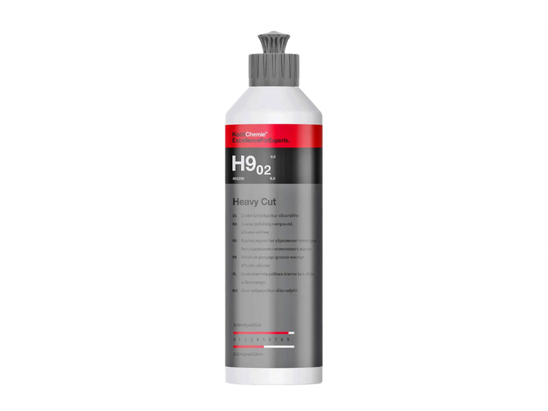 Η Koch-Chemie Heavy Cut H9.02 είναι επαγγελματική αλοιφή γυαλίσματος υψηλής κοπτικής ικανότητας, σχεδιασμένη για την αφαίρεση βαθιών γρατζουνιών, έντονης οξείδωσης και σημαδιών λείανσης έως P1200 από βαμμένες επιφάνειες οχημάτων. Ιδανική για scratch-resistant βερνίκια και σύγχρονα συστήματα βαφής.