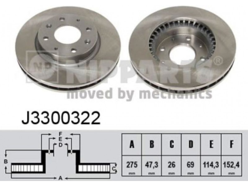 Criteries : Αριθμός οπών 4, Διάμετρος κέντρωσης [mm] 69, Διάμετρος κύκλου οπής [mm] 114,3, Διάμετρος πλήμνης τροχού [mm] 152,4, Ελάχιστο πάχος [mm] 24, Εξωτερική διάμετρος [mm] 275, Πάχος δισκόπλακας [mm] 26, Πλευρά τοποθέτησης μπροστινός άξονας, Τύπος δισκόφρενων εσωτερικά αεριζόμενο, Υψος [mm] 47,3