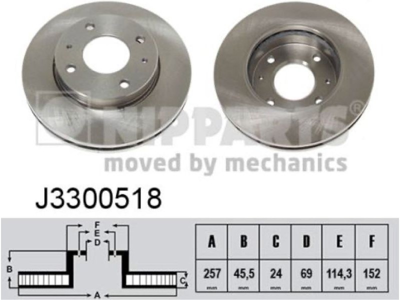 Criteries : Αριθμός οπών 4, Διάμετρος κέντρωσης [mm] 69, Διάμετρος κύκλου οπής [mm] 114,3, Διάμετρος πλήμνης τροχού [mm] 152, Ελάχιστο πάχος [mm] 22,4, Εξωτερική διάμετρος [mm] 257, Πάχος δισκόπλακας [mm] 24, Πλευρά τοποθέτησης μπροστινός άξονας, Τύπος δισκόφρενων εσωτερικά αεριζόμενο, Υψος [mm] 45,5