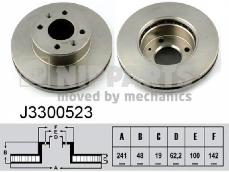 Criteries : Αριθμός οπών 4, Διάμετρος κέντρωσης [mm] 62,2, Διάμετρος κύκλου οπής [mm] 100, Διάμετρος πλήμνης τροχού [mm] 142, Ελάχιστο πάχος [mm] 17, Εξωτερική διάμετρος [mm] 241, Πάχος δισκόπλακας [mm] 19, Πλευρά τοποθέτησης μπροστινός άξονας, Τύπος δισκόφρενων εσωτερικά αεριζόμενο, Υψος [mm] 48