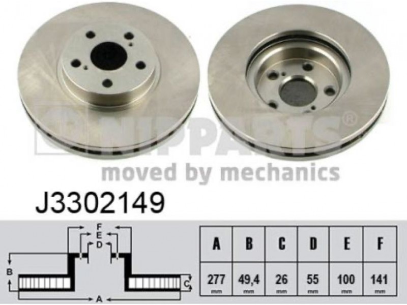 Criteries : Αριθμός οπών 5, Διάμετρος κέντρωσης [mm] 55, Διάμετρος κύκλου οπής [mm] 100, Διάμετρος πλήμνης τροχού [mm] 141, Ελάχιστο πάχος [mm] 24, Εξωτερική διάμετρος [mm] 277, Πάχος δισκόπλακας [mm] 26, Τύπος δισκόφρενων εσωτερικά αεριζόμενο, Υψος [mm] 49,4