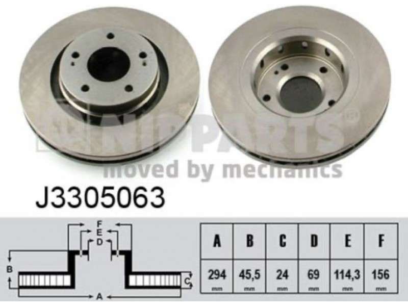Criteries : Αριθμός οπών 5, Διάμετρος κέντρωσης [mm] 69, Διάμετρος κύκλου οπής [mm] 114,3, Διάμετρος πλήμνης τροχού [mm] 156, Ελάχιστο πάχος [mm] 22,4, Εξωτερική διάμετρος [mm] 294, Πάχος δισκόπλακας [mm] 24, Πλευρά τοποθέτησης μπροστινός άξονας, Τύπος δισκόφρενων εσωτερικά αεριζόμενο, Υψος [mm] 45,5