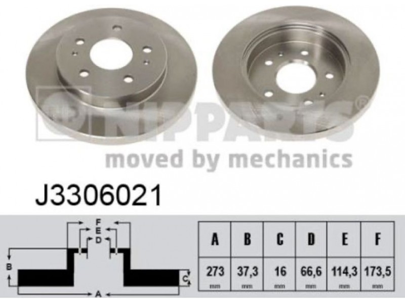 Criteries : Αριθμός οπών 5, Διάμετρος κέντρωσης [mm] 66,6, Διάμετρος κύκλου οπής [mm] 114,3, Διάμετρος πλήμνης τροχού [mm] 173,5, Ελάχιστο πάχος [mm] 15, Εξωτερική διάμετρος [mm] 273, Πάχος δισκόπλακας [mm] 16, Τύπος δισκόφρενων πλήρες, Υψος [mm] 37,3