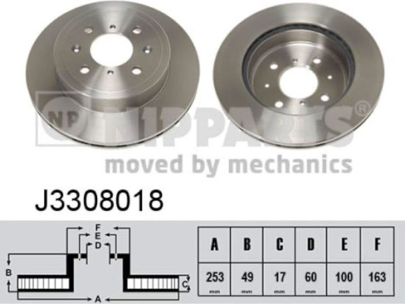 Criteries : Αριθμός οπών 4, Διάμετρος κέντρωσης [mm] 60, Διάμετρος κύκλου οπής [mm] 100, Διάμετρος πλήμνης τροχού [mm] 163, Ελάχιστο πάχος [mm] 15, Εξωτερική διάμετρος [mm] 253, Πάχος δισκόπλακας [mm] 17, Πλευρά τοποθέτησης μπροστινός άξονας, Τύπος δισκόφρενων εσωτερικά αεριζόμενο, Υψος [mm] 49