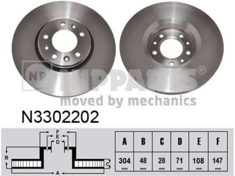 Criteries : Διάμετρος κέντρωσης [mm] 71, Διάμετρος κύκλου οπής [mm] 108, Διάμετρος πλήμνης τροχού [mm] 147, Ελάχιστο πάχος [mm] 26, Εξωτερική διάμετρος [mm] 304, Ζάντα, αριθμός οπών 5, Πάχος δισκόπλακας [mm] 28, Πλευρά τοποθέτησης μπροστινός άξονας, Τύπος δισκόφρενων αεριζόμενο, Υψος [mm] 41
