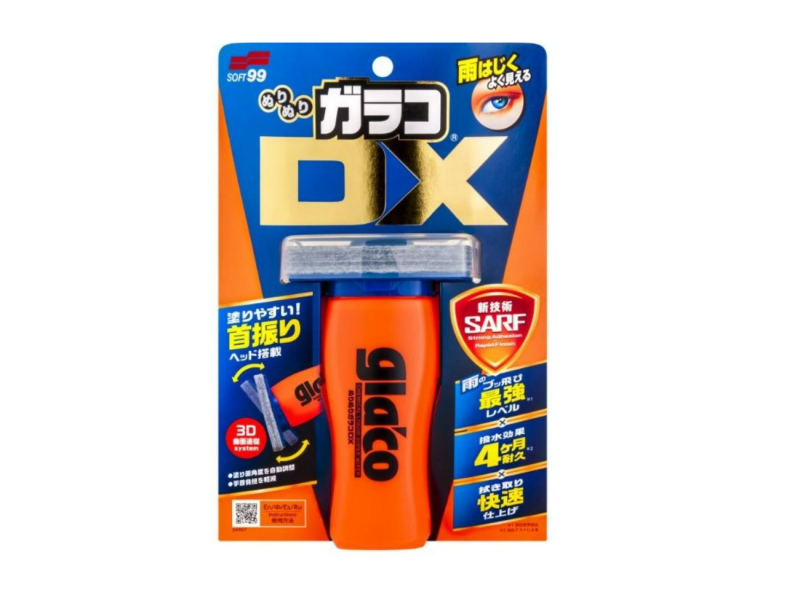 Το Soft99 Glaco DX είναι η τελευταία γενιά υδροφοβικών σφραγιστικών επιστρώσεων γυαλιού από τη σειρά Glaco, σχεδιασμένη να προσφέρει εξαιρετικά ισχυρή απώθηση νερού και βελτιωμένη ορατότητα κατά την οδήγηση σε βροχή. Χρησιμοποιεί την τεχνολογία SARF (Strong Adhesion + Rapid Finish), η οποία επιτρέπει την ταχεία στερέωση της επίστρωσης στο γυαλί μέσα σε λίγα λεπτά και εξασφαλίζει ανθεκτικότητα έως και 4 μήνες με το σωστό application. Η επίστρωση σχηματίζει μια εξαιρετικά λεία υδροφοβική μεμβράνη που διώχνει το νερό με απαράμιλλη δύναμη και ταχύτητα, ενώ ο ενσωματωμένος εφαρμοστής με κινητή κεφαλή και μεγαλύτερη επιφάνεια από τσόχα καθιστά την εφαρμογή εύκολη και ομοιόμορφη σε όλο το παρμπρίζ ή τα παράθυρα.