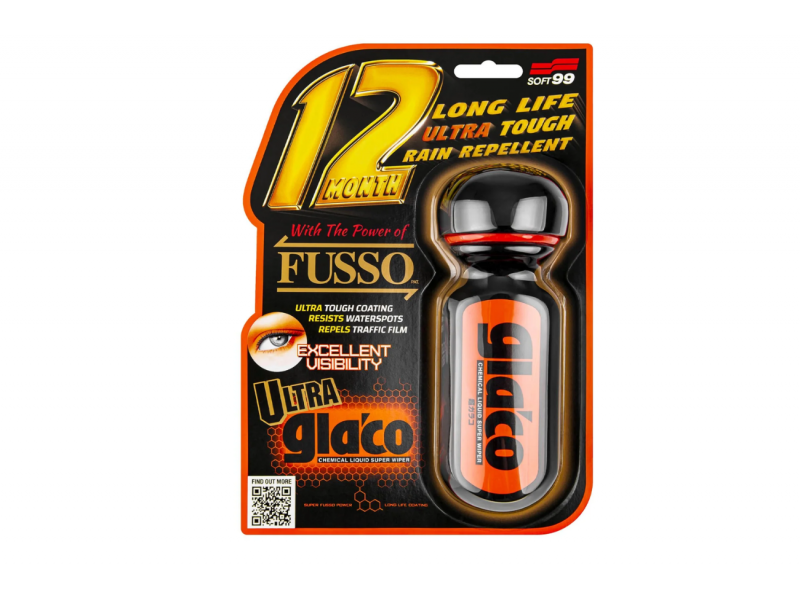Το Soft99 Ultra Glaco 70 ml είναι μια υδροφοβική σφραγιστική επίστρωση για τζάμια αυτοκινήτου που χρησιμοποιεί την τεχνολογία Fusso για υψηλή ανθεκτικότητα και διάρκεια έως και ~12 μήνες. Η επίστρωση μετατρέπει το νερό σε σταγόνες που κυλούν εύκολα από την επιφάνεια, ενισχύοντας την ορατότητα σε βροχερές συνθήκες και μειώνοντας την ανάγκη για χρήση υαλοκαθαριστήρων. Το προϊόν λειτουργεί όλο τον χρόνο και βοηθά επίσης στην απομάκρυνση ρύπων, υπολειμμάτων εντόμων, χιονιού ή πάγου από τα τζάμια.