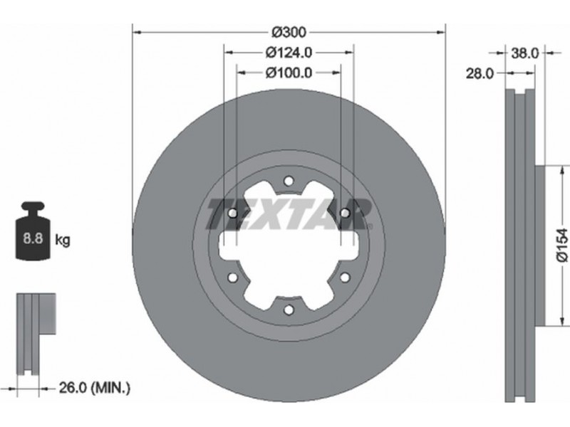 Criteries : Βάρος [kg] 8,8, Διάμετρος κέντρωσης [mm] 100, Διάμετρος κύκλου οπής [mm] 124, Διάμετρος οπής μπουλονιού τροχού [mm] 10, Ελάχιστο πάχος [mm] 26, Εξωτερική διάμετρος [mm] 300, Εσωτερική διάμετρος [mm] 1, μήκος συσκευασίας [cm] 31,3, Πατρόν τρύπας/αριθμός τρυπών 06/06, Πάχος δισκόπλακας [mm] 28, πλάτος συσκευασίας [cm] 31,3, Συμπληρωματικό προϊόν/ πληροφορίες 2 χωρίς μπουλόνια στερέωσης τροχού, Συμπληρωματικό προϊόν/ πληροφορίες 2 χωρίς πλήμνη, Συμπληρωματικό προϊόν/ πληροφορίες 2 χωρίς ρουλεμάν τροχού, Τύπος δισκόφρενων εσωτερικά αεριζόμενο, Υψος [mm] 38, ύψος συσκευασίας [cm] 10