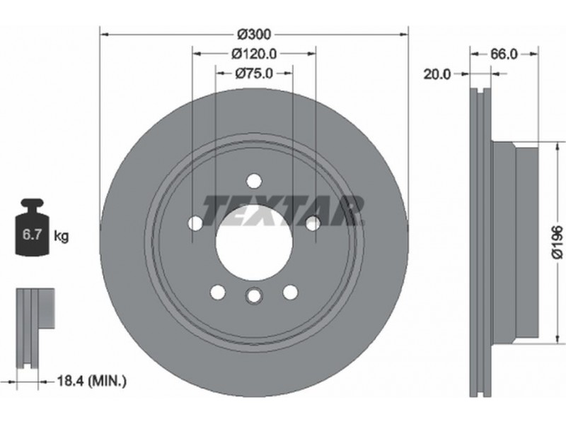 Criteries : Βάρος [kg] 6,7, Διάμετρος κέντρωσης [mm] 75, Διάμετρος κύκλου οπής [mm] 120, Διάμετρος οπής μπουλονιού τροχού [mm] 14,6, Ελάχιστο πάχος [mm] 18,4, Εξωτερική διάμετρος [mm] 300, Επιφάνεια με επίστρωση, Εσωτερική διάμετρος [mm] 185, μήκος συσκευασίας [cm] 30,8, Πατρόν τρύπας/αριθμός τρυπών 05/06, Πάχος δισκόπλακας [mm] 20, πλάτος συσκευασίας [cm] 30,8, Συμπληρωματικό προϊόν/ πληροφορίες 2 χωρίς μπουλόνια στερέωσης τροχού, Συμπληρωματικό προϊόν/ πληροφορίες 2 χωρίς πλήμνη, Συμπληρωματικό προϊόν/ πληροφορίες 2 χωρίς ρουλεμάν τροχού, Τύπος δισκόφρενων εσωτερικά αεριζόμενο, Υψος [mm] 66, ύψος συσκευασίας [cm] 16