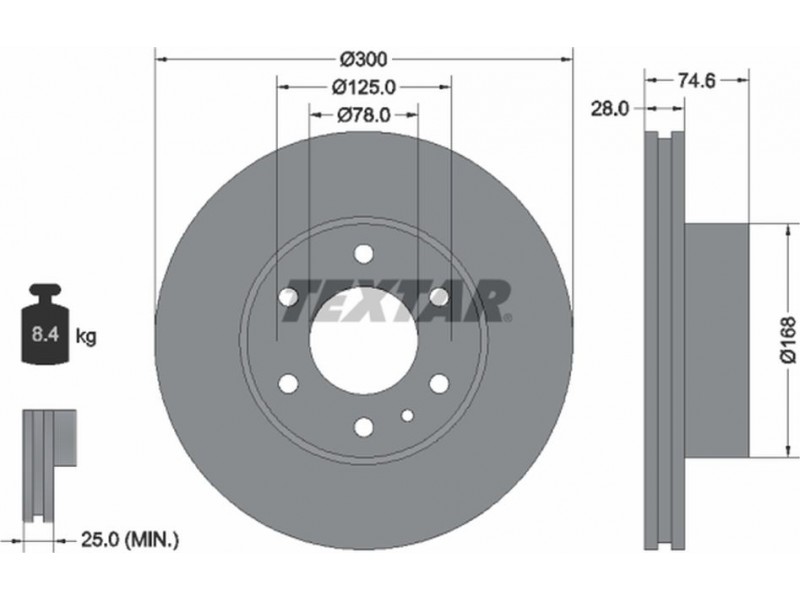 Criteries : Βάρος [kg] 8,4, Διάμετρος κέντρωσης [mm] 78, Διάμετρος κύκλου οπής [mm] 125, Διάμετρος οπής μπουλονιού τροχού [mm] 15,5, Ελάχιστο πάχος [mm] 25, Εξωτερική διάμετρος [mm] 300, Εσωτερική διάμετρος [mm] 156, μήκος συσκευασίας [cm] 30,8, Πατρόν τρύπας/αριθμός τρυπών 06/07, Πάχος δισκόπλακας [mm] 28, πλάτος συσκευασίας [cm] 30,8, Συμπληρωματικό προϊόν/ πληροφορίες 2 χωρίς μπουλόνια στερέωσης τροχού, Συμπληρωματικό προϊόν/ πληροφορίες 2 χωρίς πλήμνη, Συμπληρωματικό προϊόν/ πληροφορίες 2 χωρίς ρουλεμάν τροχού, Τύπος δισκόφρενων εσωτερικά αεριζόμενο, Υψος [mm] 74,6, ύψος συσκευασίας [cm] 18,5