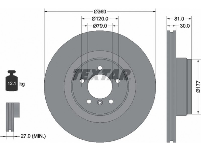 Criteries : Βάρος [kg] 12,1, Διάμετρος κέντρωσης [mm] 79, Διάμετρος κύκλου οπής [mm] 120, Διάμετρος οπής μπουλονιού τροχού [mm] 16,6, Ελάχιστο πάχος [mm] 27, Εξωτερική διάμετρος [mm] 360, Επιφάνεια με επίστρωση, Εσωτερική διάμετρος [mm] 175, μήκος συσκευασίας [cm] 37,3, Πατρόν τρύπας/αριθμός τρυπών 05/06, Πάχος δισκόπλακας [mm] 30, πλάτος συσκευασίας [cm] 37,3, Συμπληρωματικό προϊόν/ πληροφορίες 2 χωρίς μπουλόνια στερέωσης τροχού, Συμπληρωματικό προϊόν/ πληροφορίες 2 χωρίς πλήμνη, Συμπληρωματικό προϊόν/ πληροφορίες 2 χωρίς ρουλεμάν τροχού, Τύπος δισκόφρενων εσωτερικά αεριζόμενο, Υψος [mm] 81, ύψος συσκευασίας [cm] 10,5