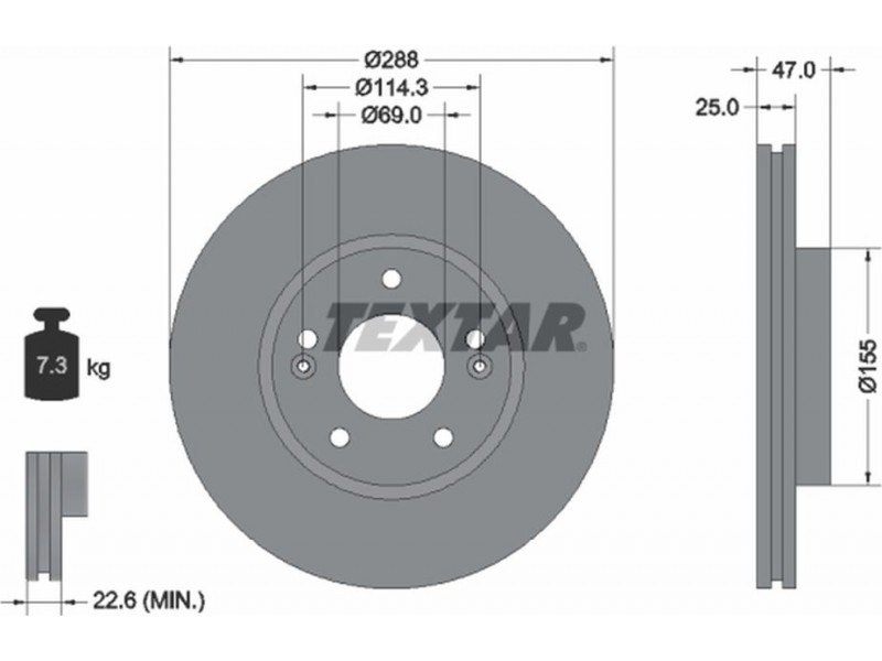 Criteries : Βάρος [kg] 7,3, Διάμετρος κέντρωσης [mm] 69, Διάμετρος κύκλου οπής [mm] 114,3, Διάμετρος οπής μπουλονιού τροχού [mm] 12,6, Ελάχιστο πάχος [mm] 22,6, Εξωτερική διάμετρος [mm] 288, Επιφάνεια με επίστρωση, Εσωτερική διάμετρος [mm] 143,3, μήκος συσκευασίας [cm] 30,8, Πατρόν τρύπας/αριθμός τρυπών 05/07, Πάχος δισκόπλακας [mm] 25, πλάτος συσκευασίας [cm] 30,8, Συμπληρωματικό προϊόν/ πληροφορίες 2 χωρίς μπουλόνια στερέωσης τροχού, Συμπληρωματικό προϊόν/ πληροφορίες 2 χωρίς πλήμνη, Συμπληρωματικό προϊόν/ πληροφορίες 2 χωρίς ρουλεμάν τροχού, Τύπος δισκόφρενων εσωτερικά αεριζόμενο, Υψος [mm] 47, ύψος συσκευασίας [cm] 12,7