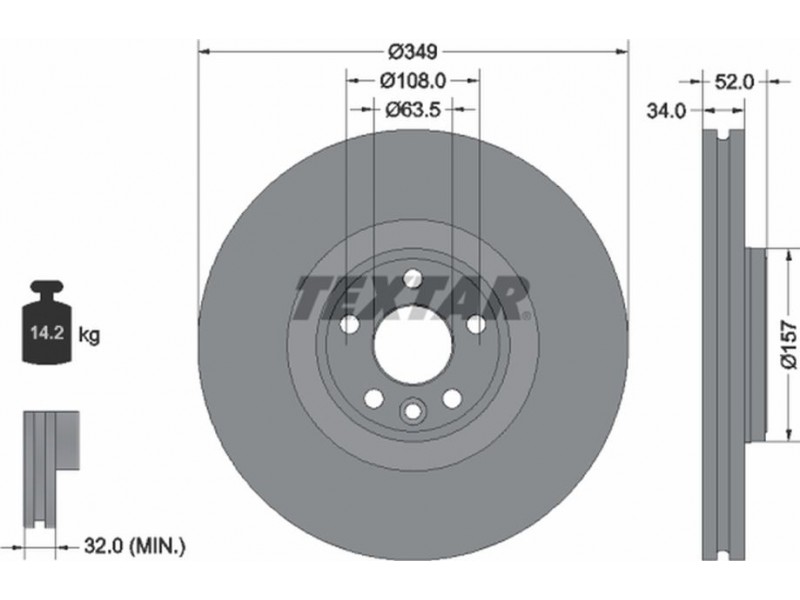 Criteries : Βάρος [kg] 14,2, Διάμετρος κέντρωσης [mm] 63,5, Διάμετρος κύκλου οπής [mm] 108, Διάμετρος οπής μπουλονιού τροχού [mm] 15,6, Ελάχιστο πάχος [mm] 32, Εξωτερική διάμετρος [mm] 349, Επεξεργασία υψηλής ανθράκωσης, Επιφάνεια με επίστρωση, Εσωτερική διάμετρος [mm] 145, μήκος συσκευασίας [cm] 36,8, Πατρόν τρύπας/αριθμός τρυπών 05/06, Πάχος δισκόπλακας [mm] 34, πλάτος συσκευασίας [cm] 36,8, Συμπληρωματικό προϊόν/ πληροφορίες 2 χωρίς μπουλόνια στερέωσης τροχού, Συμπληρωματικό προϊόν/ πληροφορίες 2 χωρίς πλήμνη, Συμπληρωματικό προϊόν/ πληροφορίες 2 χωρίς ρουλεμάν τροχού, Τύπος δισκόφρενων εσωτερικά αεριζόμενο, Υψος [mm] 52, ύψος συσκευασίας [cm] 7