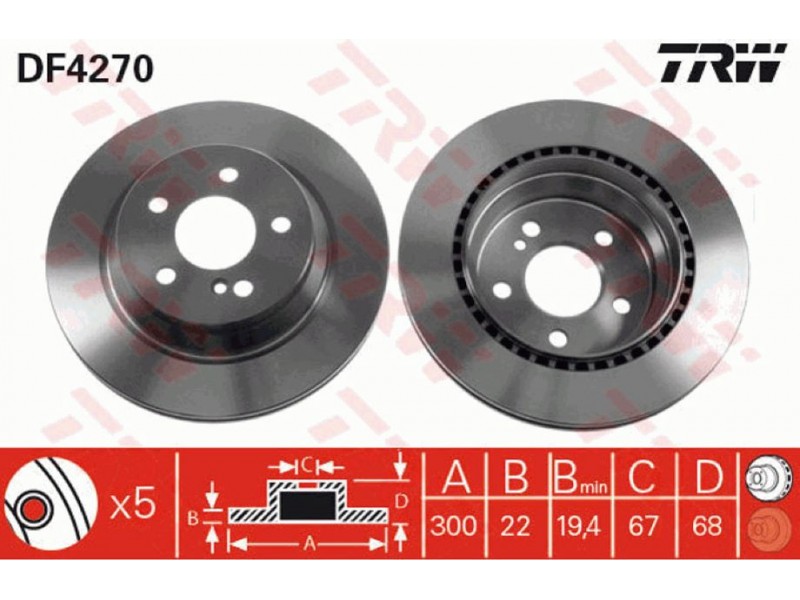 DF4270 ΔΙΣΚΟΠΛΑΚΑ ΟΠ.ΑΕΡΙΖ.(Φ300) TRW DF4270 - Δισκόπλακα