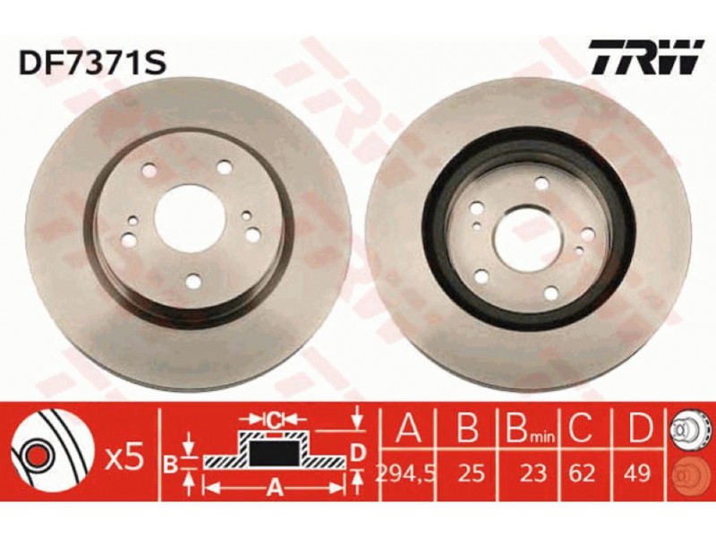 TRWDF7371S ΔΙΣΚΟΠΛΑΚΑ ΕΜΠΡΟΣ Φ294MM TRW DF7371S - Δισκόπλακα