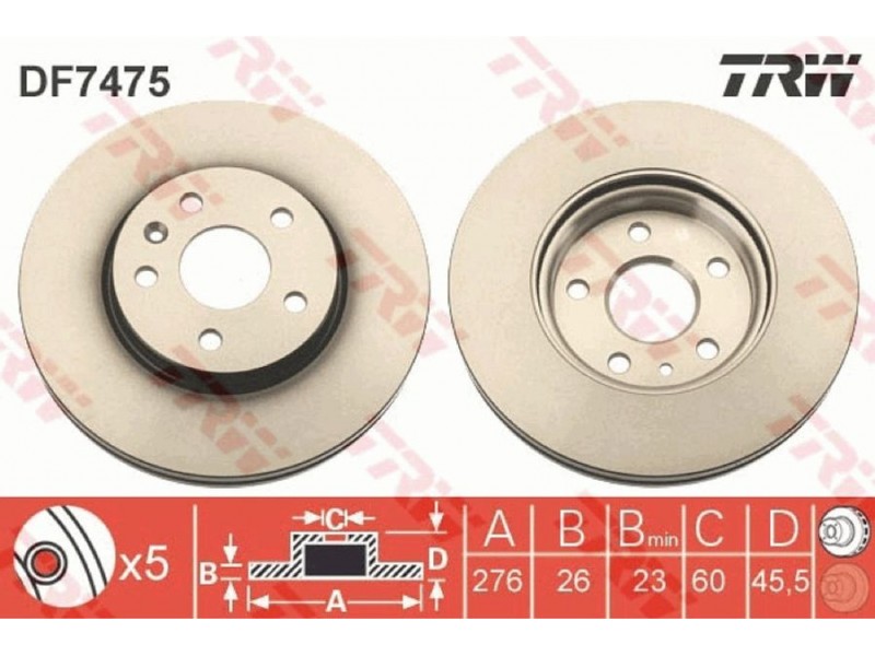 TRWDF7475 ΔΙΣΚΟΠΛΑΚΑ ΕΜΠΡΟΣ Φ276MM TRW DF7475 - Δισκόπλακα