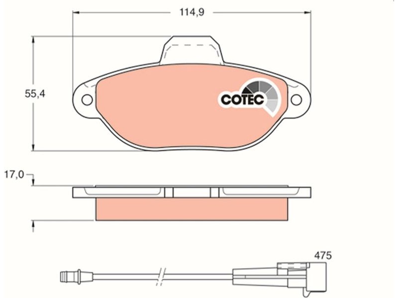 Criteries : Επαφή προειδοποίησης φθοράς συμπεριλ. επαφής για ένδειξη φθοράς, Μήκος επαφής προειδοποίησης [mm] 475, Πάχος [mm] 17, Περιορισμός κατασκευαστή BENDIX, Πλάτος [mm] 114,9, Πλήθος ενδείξεων φθοράς [ανά άξονα] 1, Στοιχεία ελέγχου E1 90R 01024/069, Υψος [mm] 55,4