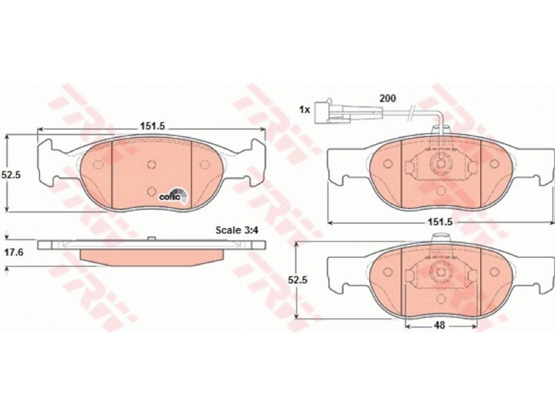 Criteries : Επαφή προειδοποίησης φθοράς συμπεριλ. επαφής για ένδειξη φθοράς, Κωδικός του συνιστώμενου εξαρτήματος PFK302, Μήκος επαφής προειδοποίησης [mm] 200, Πάχος [mm] 17,6, Περιορισμός κατασκευαστή ATE, Πλάτος [mm] 151,5, Πλήθος ενδείξεων φθοράς [ανά άξονα] 1, Στοιχεία ελέγχου E1 90R 01024/008, Υψος [mm] 52,5