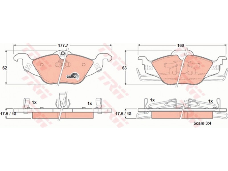 Criteries : Επαφή προειδοποίησης φθοράς προετοιμασμένο για προειδοποιητική ένδειξη φθοράς, Μήκος 1 [mm] 177,7, Μήκος 2 [mm] 160, Πάχος 1 [mm] 17,5, Πάχος 2 [mm] 18, Περιορισμός κατασκευαστή ATE, Στοιχεία ελέγχου E9 90R 027031, Ύψος 1 [mm] 62, Ύψος 2 [mm] 63