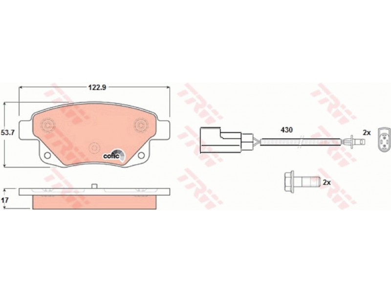 Criteries : Επαφή προειδοποίησης φθοράς συμπεριλ. επαφής για ένδειξη φθοράς, Πάχος [mm] 17, Περιορισμός κατασκευαστή BOSCH, Πλάτος [mm] 122,9, Πλήθος ενδείξεων φθοράς [ανά άξονα] 2, Στοιχεία ελέγχου E9 90R - 01708/027, Συμπληρωματικό προϊόν / συμπληρωματική πληροφορία με αξεσουάρ, Συμπληρωματικό προϊόν/ πληροφορίες 2 με βίδες δαγκάνας φρένων, Υψος [mm] 53,7