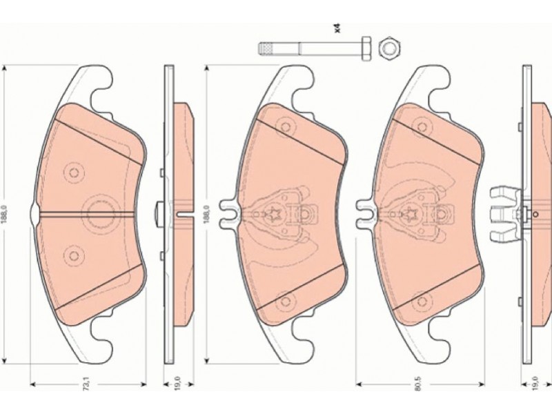 Criteries : Δώστε προσοχή στα τεχνικά στοιχεία , εξαρτώμενο από τη φορά περιστροφής , Επαφή προειδοποίησης φθοράς προετοιμασμένο για προειδοποιητική ένδειξη φθοράς, Πάχος [mm] 19, Περιορισμός κατασκευαστή TRW, Πλάτος [mm] 188, Στοιχεία ελέγχου E9 90R - 01112/2234, Συμπληρωματικό προϊόν / συμπληρωματική πληροφορία με αξεσουάρ, Συμπληρωματικό προϊόν/ πληροφορίες 2 με βίδες δαγκάνας φρένων, Ύψος 1 [mm] 73,1, Ύψος 2 [mm] 80,5