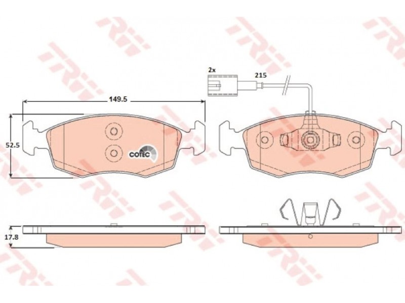 Criteries : Επαφή προειδοποίησης φθοράς συμπεριλ. επαφής για ένδειξη φθοράς, Μήκος επαφής προειδοποίησης [mm] 215, Πάχος [mm] 17,8, Περιορισμός κατασκευαστή ATE, Πλάτος [mm] 149,5, Πλήθος ενδείξεων φθοράς [ανά άξονα] 2, Στοιχεία ελέγχου E9 90R - 01107/466, Υψος [mm] 52,5