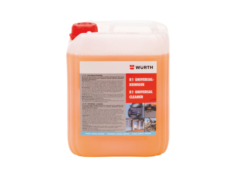 Το Wurth R1 Universal Cleaner 5 L (κωδ. 0893125005) είναι καθαριστικό γενικής χρήσης υψηλής απόδοσης, κατάλληλο για καθαρισμό οχημάτων, συνεργείων, γραφείων, εσωτερικών χώρων, μοκετών, ταπετσαριών και άλλων αδιάβροχων επιφανειών.