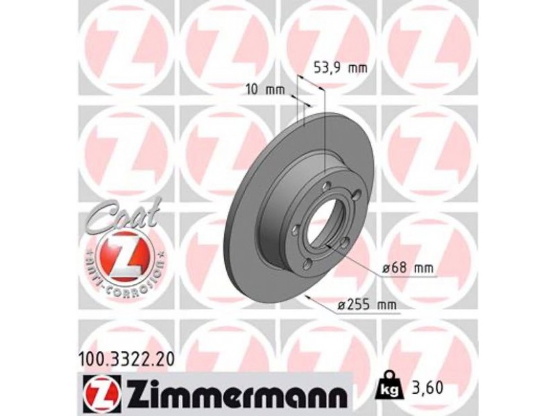 ZIMMERMANN ΔΙΣΚ\ΚΕΣ AUDI COAT Z ZIMMERMANN 100.3322.20 - Δισκόπλακα