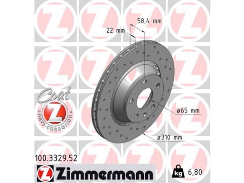 ZIMMERMANN ΔΙΣ/ΚΕΣ ΤΡΥΠΗΤΕΣ SPORT AUDI ZIMMERMANN 100.3329.52 - Δισκόπλακα