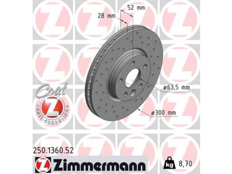 ZIMMERMANN ΔΙΣ/ΚΕΣ ΤΡΥΠΗΤΕΣ FORD SPORT ZIMMERMANN 250.1360.52 - Δισκόπλακα