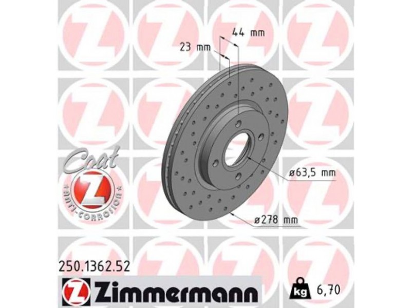 ZIMMERMANN ΔΙΣ/ΚΕΣ ΤΡΥΠΗΤΕΣ SPORT FORD ZIMMERMANN 250.1362.52 - Δισκόπλακα