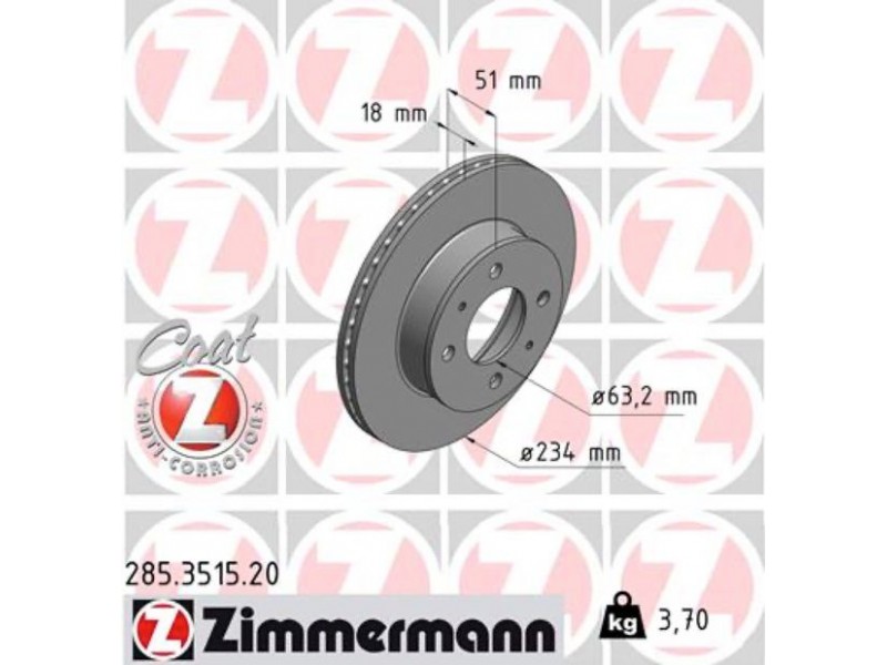 ZIMMERMANN ΔΙΣΚ/ΚΕΣ HYUNDAI COAT Z ZIMMERMANN 285.3515.20 - Δισκόπλακα