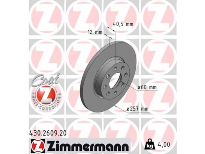 ZIMMERMANN (61209.00) ΔΙΣΚ/ΚΕΣ OPEL COAT Z ZIMMERMANN 430.2609.20 - Δισκόπλακα