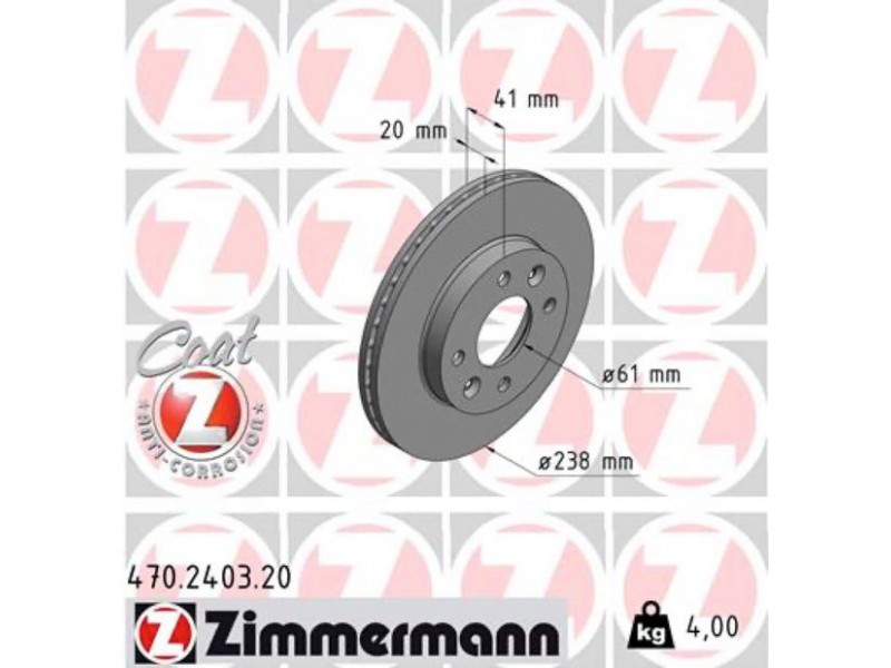 ZIMMERMANN (6144.10/92100903) ΔΙΣΚ/ΚΕΣ RENAULT COAT Z ZIMMERMANN 470.2403.20 - Δισκόπλακα