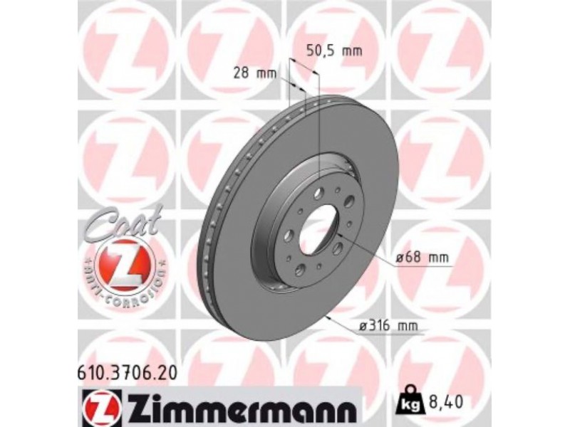 ZIMMERMANN ΔΙΣΚ\ΚΕΣ VOLVO COAT Z ZIMMERMANN 610.3706.20 - Δισκόπλακα