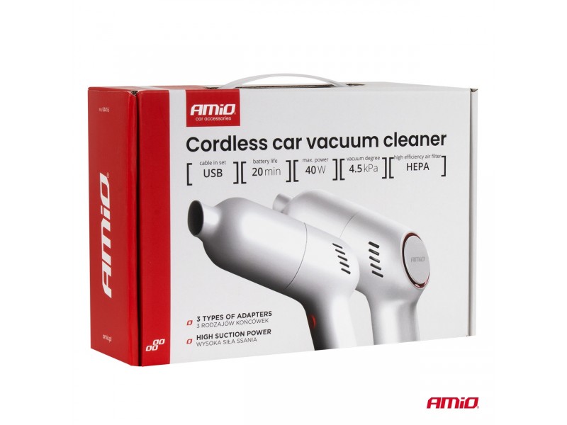 Amio - Ασύρματη Ηλεκτρική Σκούπα Αυτοκινήτου VC-07 40W 4,5 kPa με Φίλτρο HEPA – USB-C