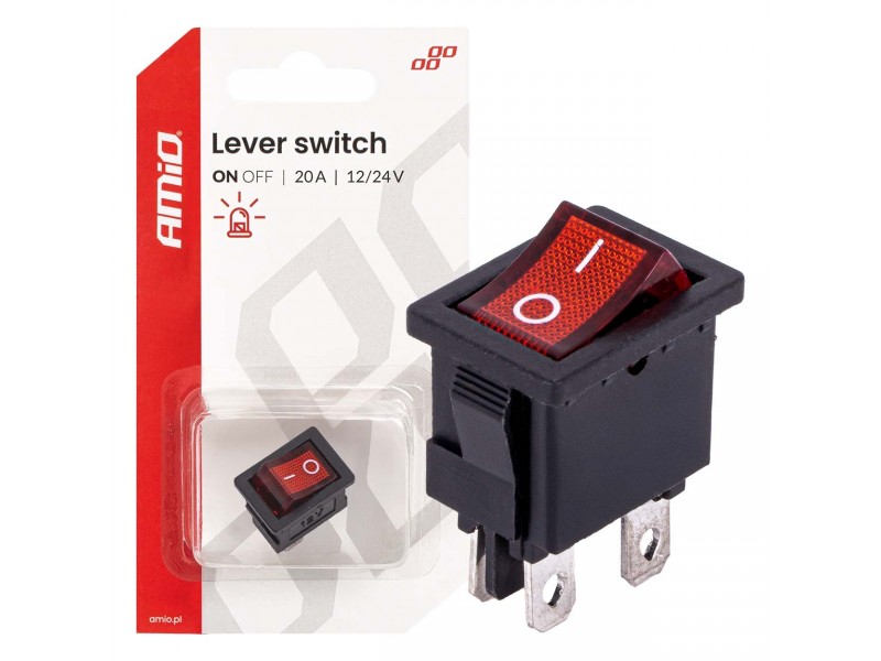 Amio - Διακόπτης Rocker 12/24V 20A με Κόκκινο Φωτισμό – Για Οχήματα & Βιομηχανικές Εφαρμογές