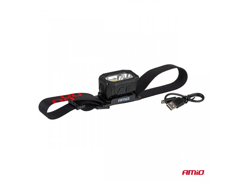 Amio - Φακός Κεφαλής Εργασίας Τύπου XPG+COB Led Χωρητικότητα Μπαταρίας 1000mAh - 1 τεμ. (04663/AM)