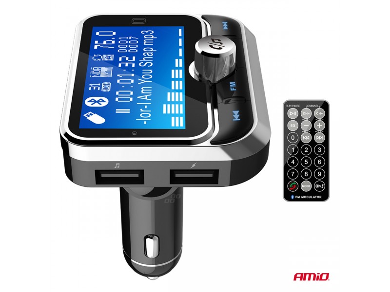 Amio - Fm Transmitter Αυτοκινήτου 12/24V Με 1xUSB Type-A, 1xUSB Type-C Και Τηλεχειριστήριο - 1 τεμ. (04657/AM)