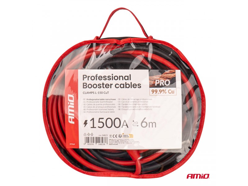 Amio - Καλώδια Φόρτισης Μπαταρίας (Ρευματοδότες) PRO τάση λειτουργίας 12-24V ένταση ρεύματος 1200A μήκος 6m από 99,9% χαλκό για Επιβατικά Αυτοκίνητα και Φορτηγά - 1 σετ (04823/AM)