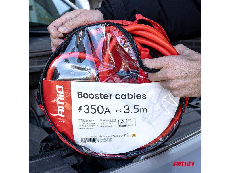 Amio - Καλώδια Φόρτισης Μπαταρίας (Ρευματοδότες) Τάση Λειτουργίας 12-24V Ένταση Ρεύματος 350A Μήκος 3,5m Με Πιστοποίηση Tuv Για Επιβατικά Αυτοκίνητα Και Φορτηγά - 1 Σετ (04594/AM)