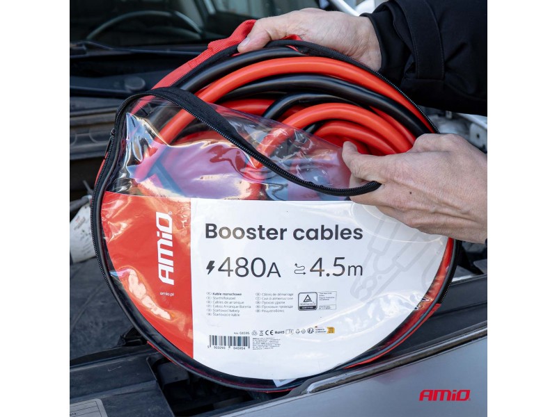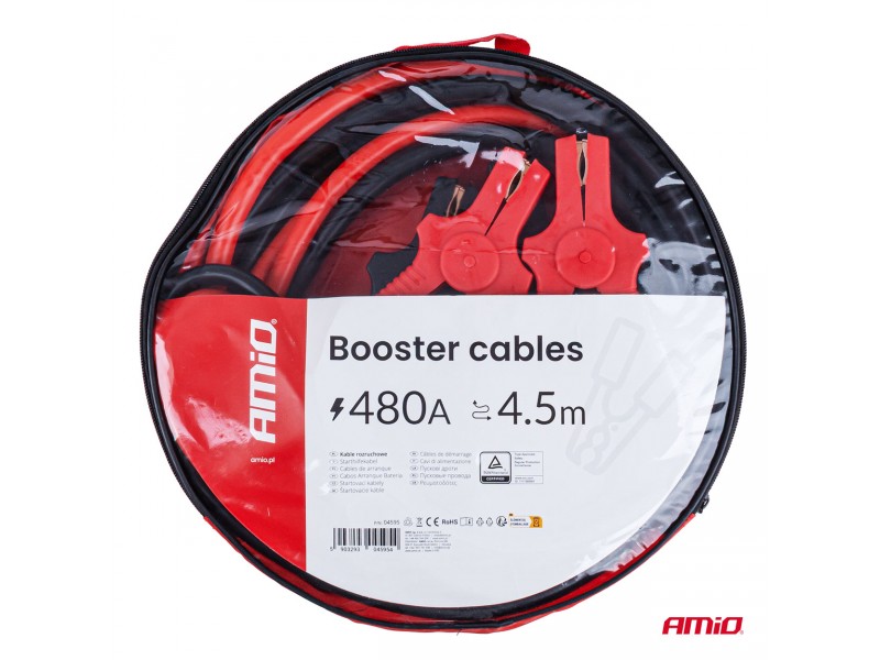 Amio - Καλώδια Φόρτισης Μπαταρίας (Ρευματοδότες) Τάση Λειτουργίας 12-24V Ένταση Ρεύματος 480A Μήκος 4,5m Με Πιστοποίηση Tuv Για Επιβατικά Αυτοκίνητα Και Φορτηγά - 1 Σετ (04595/AM)