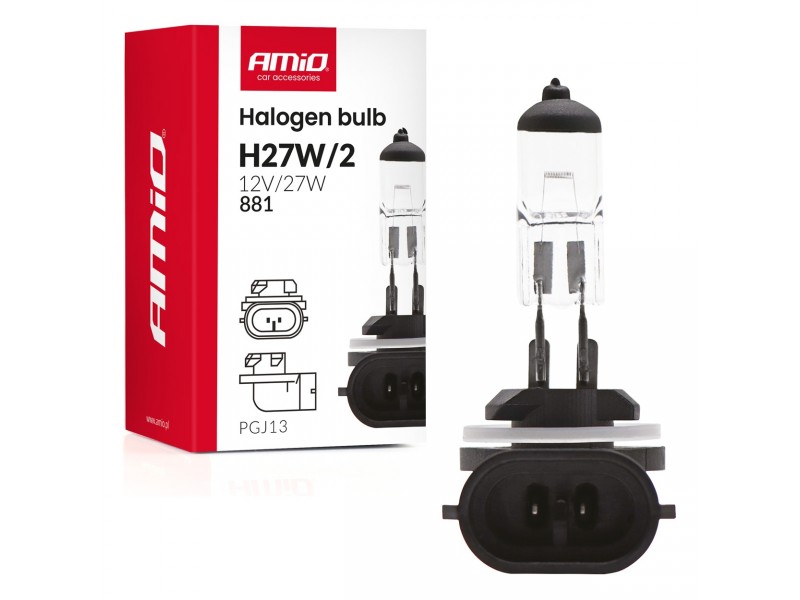 - Η λάμπα αλογόνου H27W/2 (τύπος 881) με ισχύ 27W και τάση 12V αποτελεί μια αξιόπιστη πηγή φωτισμού, σχεδιασμένη κυρίως για προβολείς ομίχλης και φώτα ημέρας (DRL).